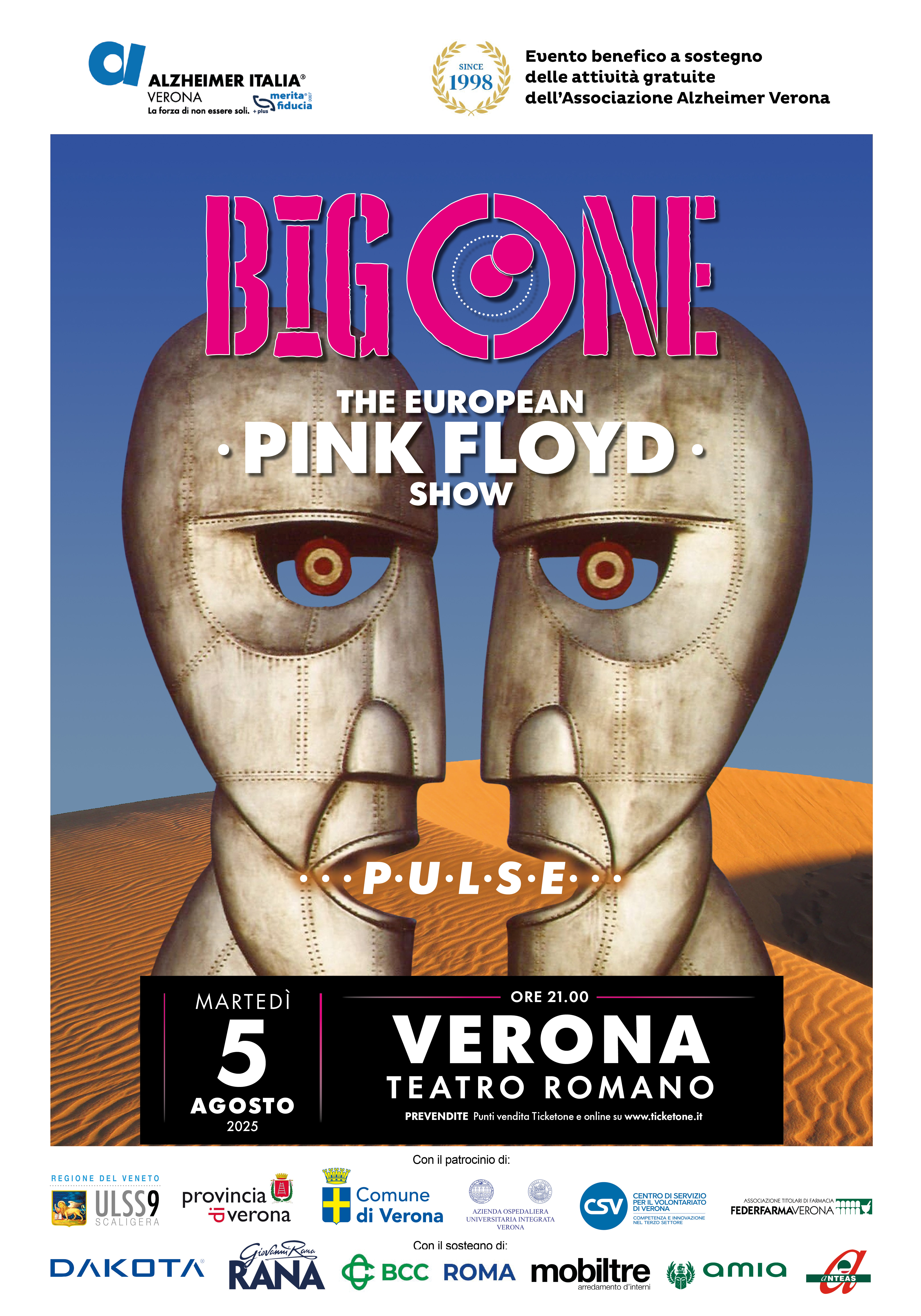 L’Associazione Alzheimer Verona ODV, dopo il successo degli scorsi anni, organizza un evento musicale benefico presso il prestigioso Teatro Romano di Verona, martedì 5 agosto alle ore 21.00, con uno spettacolo del gruppo “BIG ONE” che, dopo varie esibizioni nei più importanti teatri italiani ed internazionali, sarà finalmente a Verona (il LINK del loro sito ufficiale).