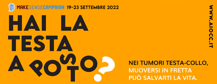 Dal 19 al 23 settembre 2022, si terrà la settimana dedicata allo screening delle patologie oncologiche testa-collo, promossa dall’Associazione Italiana di Oncologia Cervico-Cefalica (AIOCC) in occasione della campagna europea Make Sense Campaign.