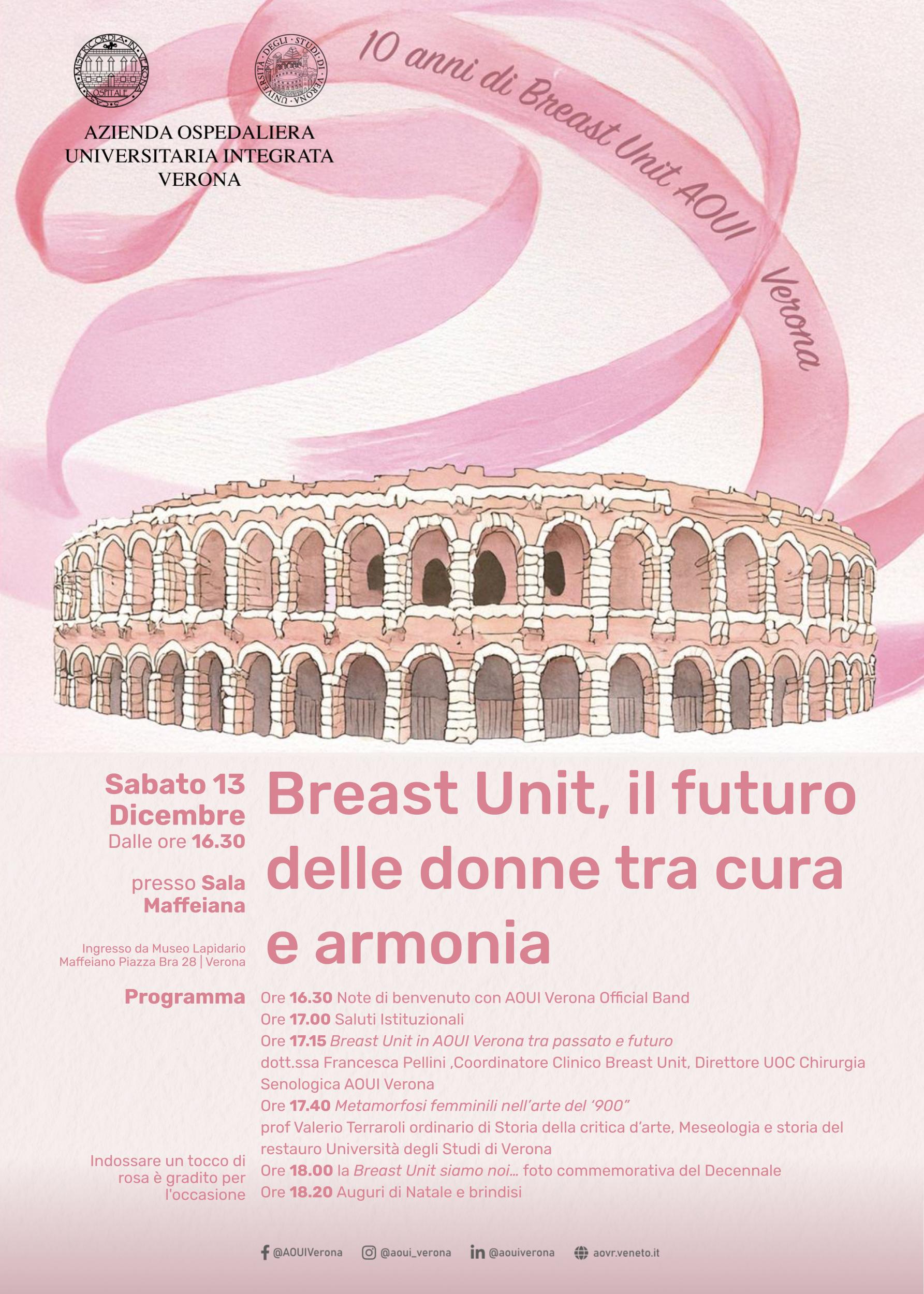 La Breast unit della città di Verona compie gli anni e festeggia proprio nel luogo cittadino più iconico: la sala Maffeiana di piazza Bra’. I dieci anni di impegno nella lotta al tumore al seno sono stati celebrati oggi con un evento aperto a tutta la cittadinanza e alla presenza delle autorità.