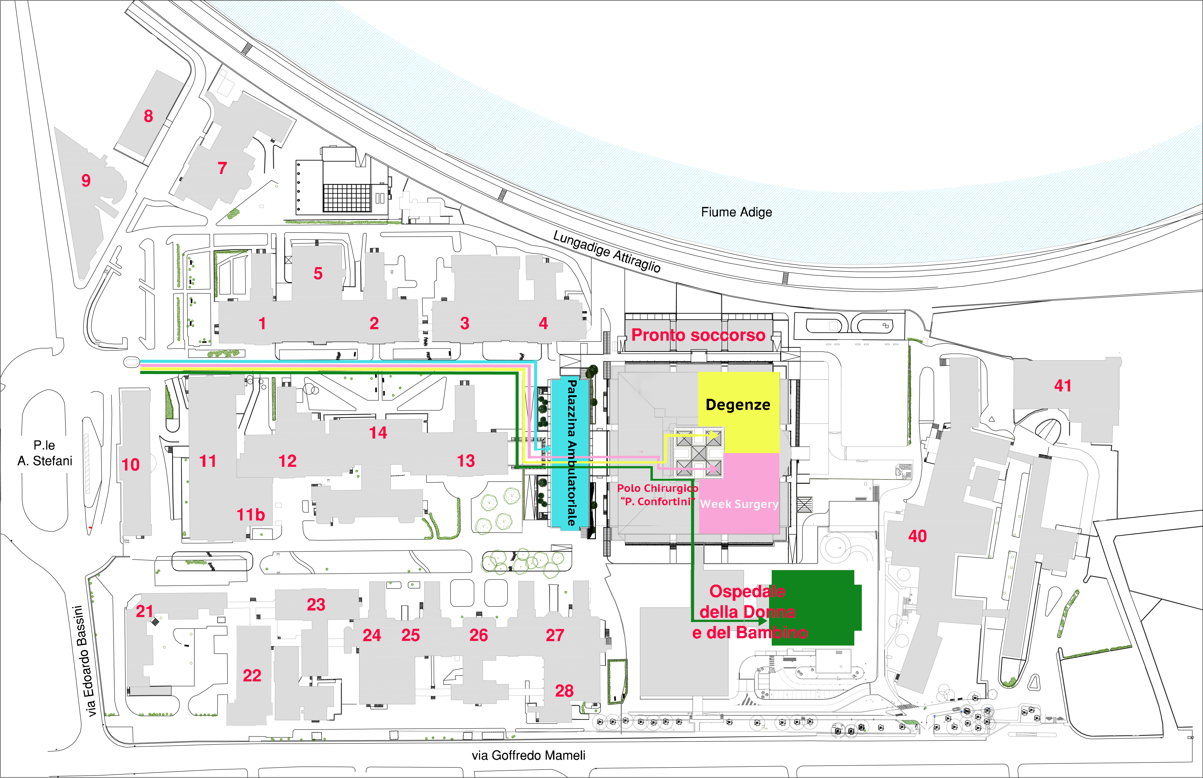 Polo Chirurgico Confortini, Poliambulatori, 1° piano, lato Adige